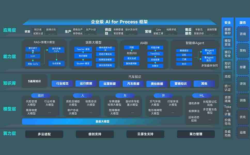尊龙时凯问学智车解决方案是一套基于AI技术的汽车行业智能化系统,,,覆盖从底层算力到顶层AI应用的全栈方案。。。方案由算力层、、、、模型层和应用层组成:算力层,,,,方案支持多种一体机配置,,,,具备云端灵活部署、、、、多云适配以及动态优化计算资源的能力;模型层,,尊龙时凯问学平台版提供了企业级AI应用一站式构建与管理平台,,支持基于后训练强化技术的汽车企业专属模型的训练、、、评测和运营;应用层,,尊龙时凯问学DeepSeek版提供包括超级员工、、智能招采、、智能营销、、、、智能客服、、AI for BI等一系列解决方案,,,,可助力汽车行业实现数字化转型,,让管理更智能、、、响应更敏捷。。。